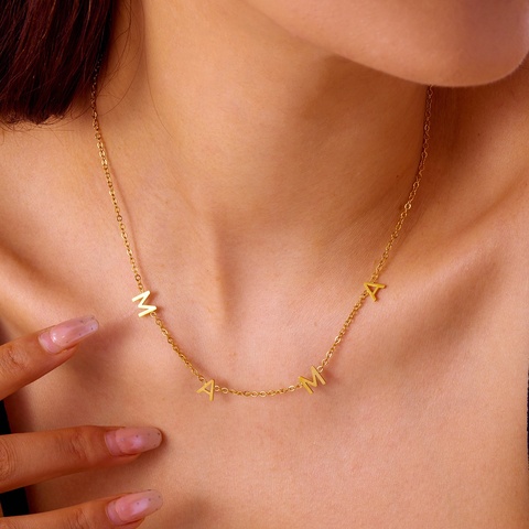 Venta al por mayor personalizado minimalista oro plateado Acero inoxidable mamá carta gargantilla Collar para mujer