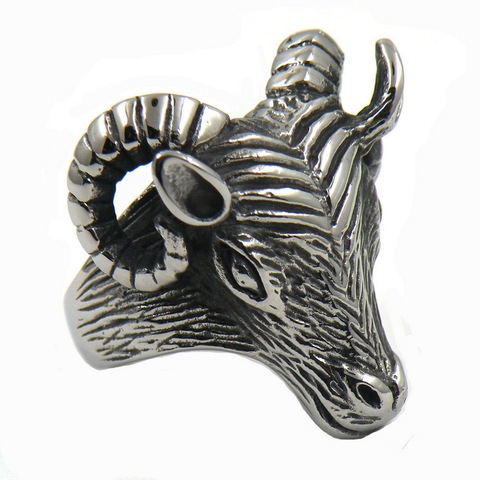 Moda Vintage cabra anillo Retro Acero inoxidable Baphomet Christian Demon cabra cabeza anillo hombres